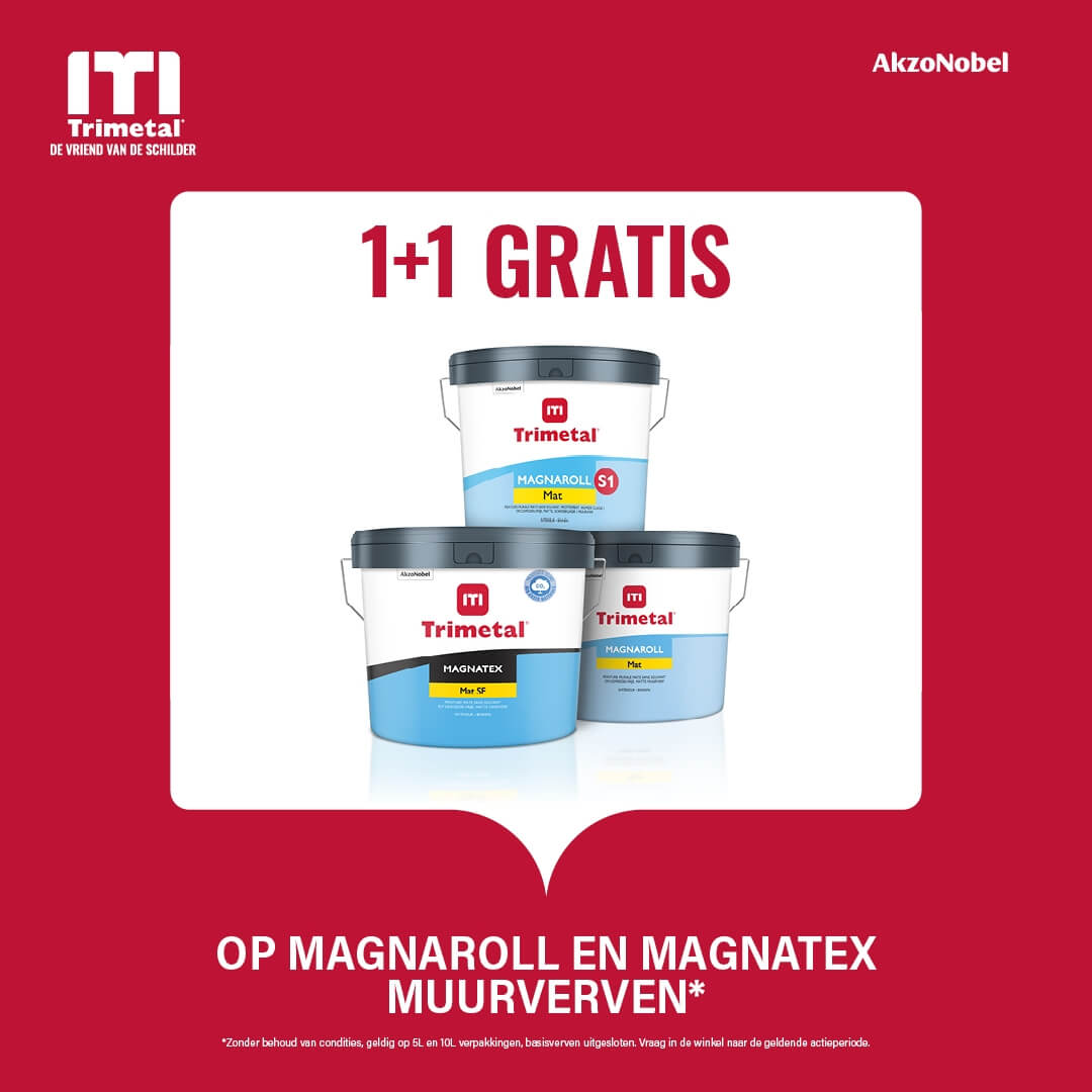 1+1 gratis opTrimetal Magnaroll en Magnatex muurverven